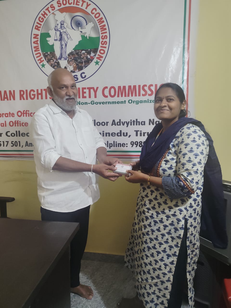 On this occasion, Mr. Kotala Ramesh, along with other members of the Human Rights Society Commission, including General Secretary Mr. Ravi Ramesh, Vijayawada City President Mr. Parabattula Yuva Kishore, Secretary Mr. Jetty Pradeep Kumar, General Secretary Mr. Pudi Enosh, and Executive Member Mr. K. Sai Ram Prasad, met with Mrs. Padmavathi to express their gratitude and appreciation for her excellent medical care provided to the victim.